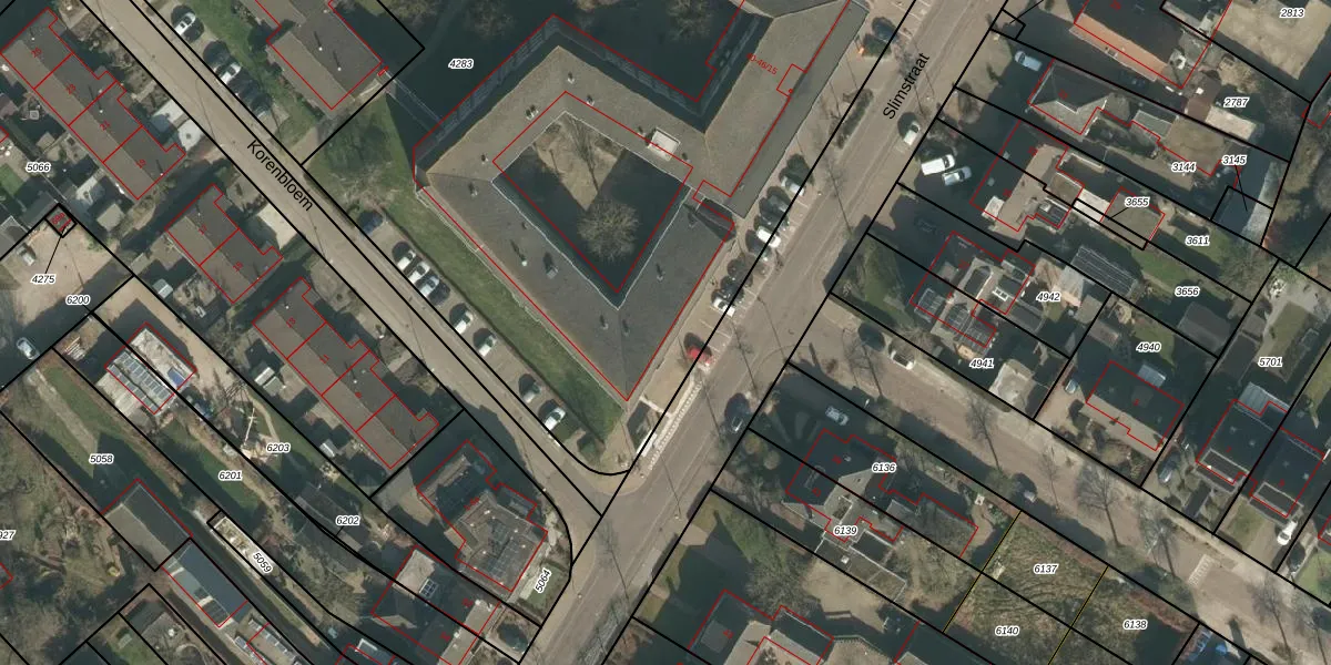 Het perceel waarop Slimstraat 40-26 staat heeft een oppervlakte van 6220 m². Dit is een zeer groot perceel. De perceeloppervlakte wordt geregistreerd door het Kadaster. Gedetailleerde informatie over de maten van dit perceel kunt u vinden in het rapport Kadastrale kaart met maatvoering van Slimstraat 40-26.