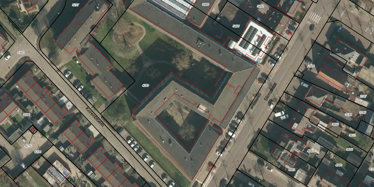 Het perceel waarop Slimstraat 46-12 staat heeft een oppervlakte van 6220 m². Dit is een zeer groot perceel. De perceeloppervlakte wordt geregistreerd door het Kadaster. Gedetailleerde informatie over de maten van dit perceel kunt u vinden in het rapport Kadastrale kaart met maatvoering van Slimstraat 46-12.