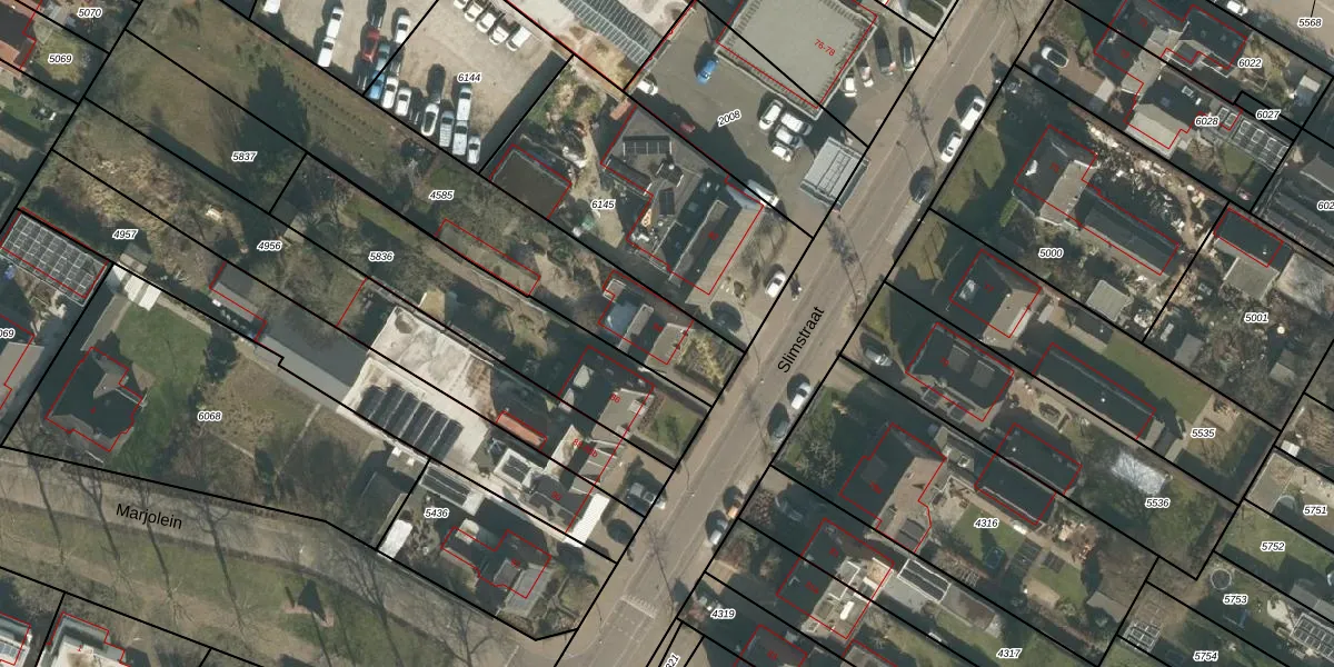 Het perceel waarop Slimstraat 84 staat heeft een oppervlakte van 1165 m². Dit is een zeer groot perceel. De perceeloppervlakte wordt geregistreerd door het Kadaster. Gedetailleerde informatie over de maten van dit perceel kunt u vinden in het rapport Kadastrale kaart met maatvoering van Slimstraat 84.