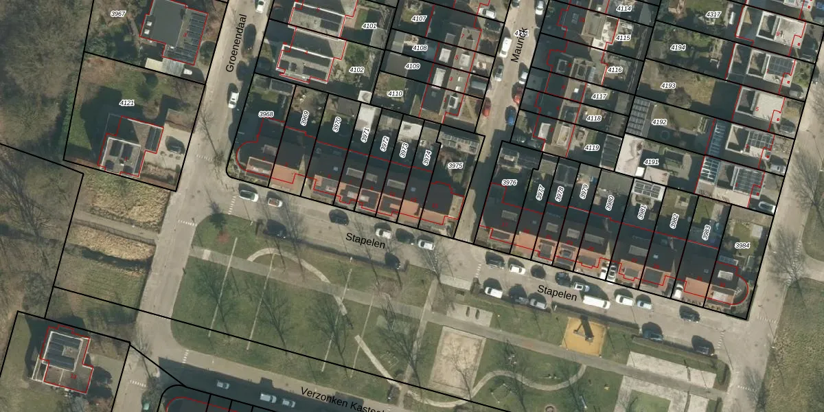 Het perceel waarop Stapelen 13 staat heeft een oppervlakte van 135 m². Dit is een middelgroot perceel. De perceeloppervlakte wordt geregistreerd door het Kadaster. Gedetailleerde informatie over de maten van dit perceel kunt u vinden in het rapport Kadastrale kaart met maatvoering van Stapelen 13.