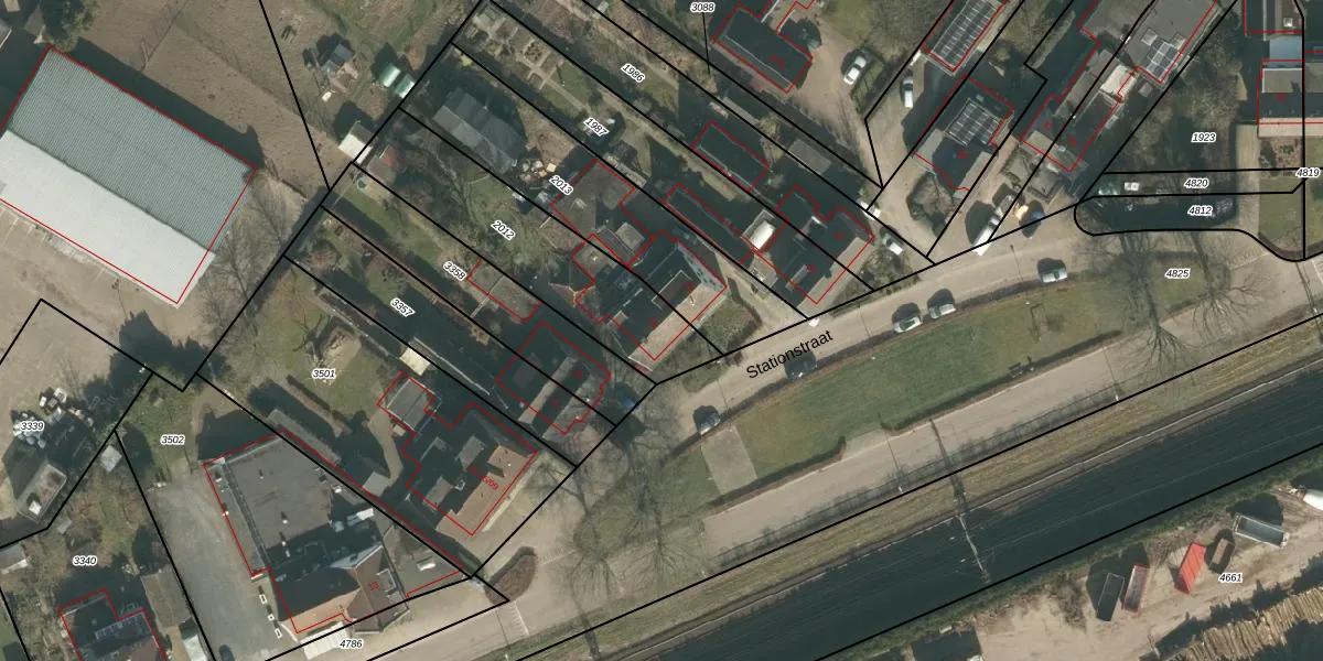Het perceel waarop Stationstraat 21 staat heeft een oppervlakte van 645 m². Dit is een groot perceel. De perceeloppervlakte wordt geregistreerd door het Kadaster. Gedetailleerde informatie over de maten van dit perceel kunt u vinden in het rapport Kadastrale kaart met maatvoering van Stationstraat 21.