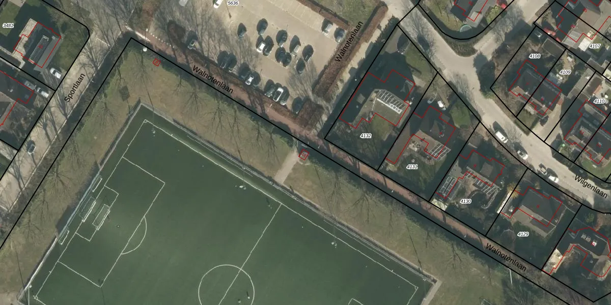 Het perceel waarop Walnotenlaan 12 staat heeft een oppervlakte van 4,6 ha. Dit is een zeer groot perceel. De perceeloppervlakte wordt geregistreerd door het Kadaster. Gedetailleerde informatie over de maten van dit perceel kunt u vinden in het rapport Kadastrale kaart met maatvoering van Walnotenlaan 12.