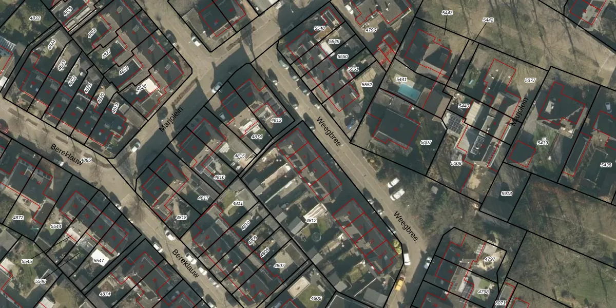 Het perceel waarop Weegbree 3 staat heeft een oppervlakte van 1556 m². Dit is een zeer groot perceel. De perceeloppervlakte wordt geregistreerd door het Kadaster. Gedetailleerde informatie over de maten van dit perceel kunt u vinden in het rapport Kadastrale kaart met maatvoering van Weegbree 3.
