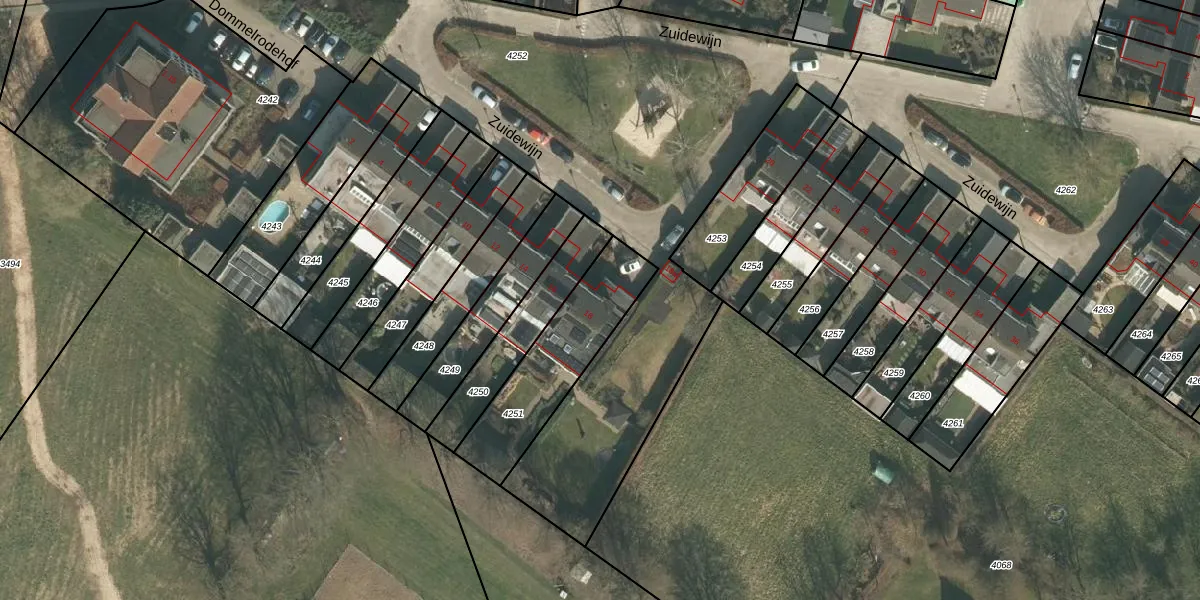 Het perceel waarop Zuidewijn 18 staat heeft een oppervlakte van 424 m². Dit is een groot perceel. De perceeloppervlakte wordt geregistreerd door het Kadaster. Gedetailleerde informatie over de maten van dit perceel kunt u vinden in het rapport Kadastrale kaart met maatvoering van Zuidewijn 18.