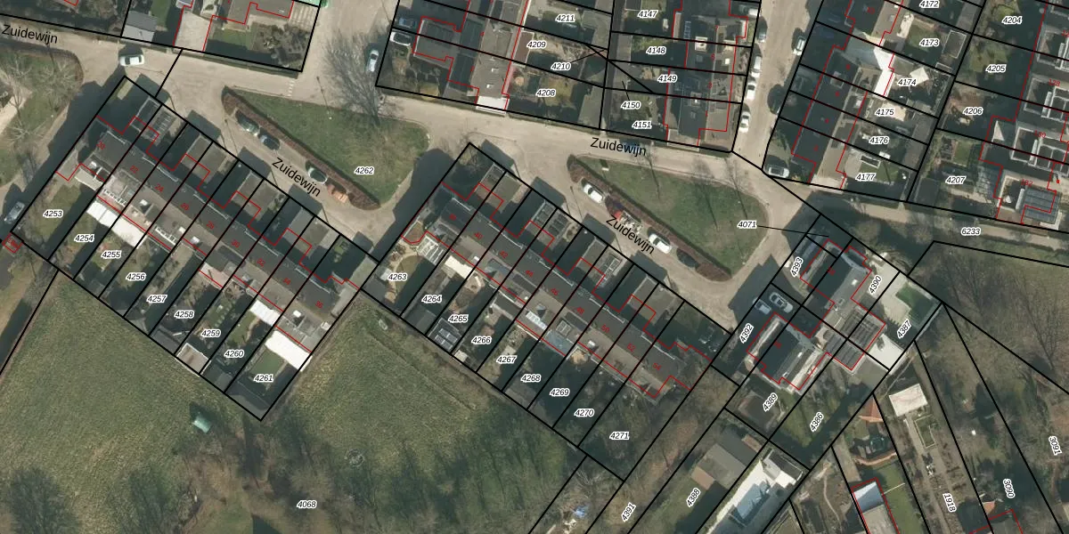 Het perceel waarop Zuidewijn 44 staat heeft een oppervlakte van 201 m². Dit is een middelgroot perceel. De perceeloppervlakte wordt geregistreerd door het Kadaster. Gedetailleerde informatie over de maten van dit perceel kunt u vinden in het rapport Kadastrale kaart met maatvoering van Zuidewijn 44.