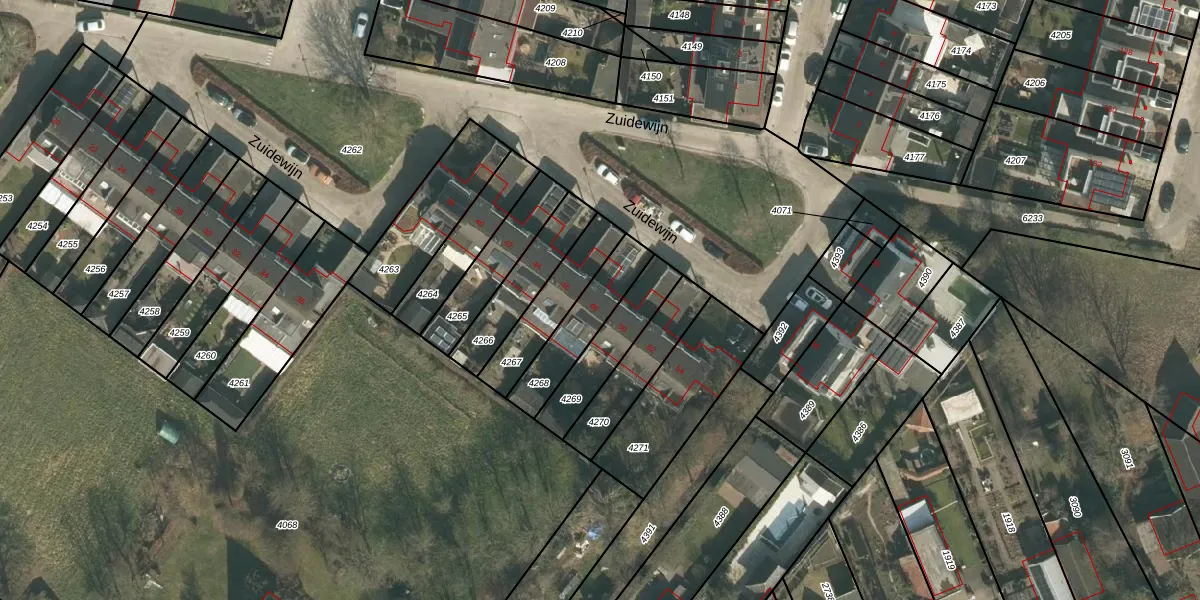 Het perceel waarop Zuidewijn 48 staat heeft een oppervlakte van 201 m². Dit is een middelgroot perceel. De perceeloppervlakte wordt geregistreerd door het Kadaster. Gedetailleerde informatie over de maten van dit perceel kunt u vinden in het rapport Kadastrale kaart met maatvoering van Zuidewijn 48.