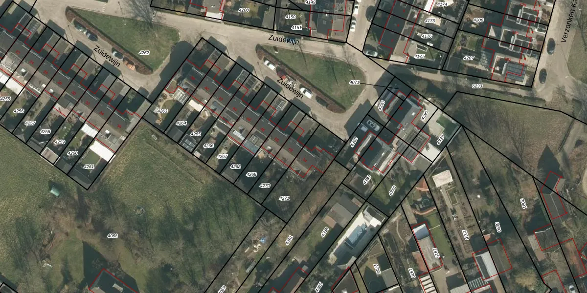 Het perceel waarop Zuidewijn 52 staat heeft een oppervlakte van 201 m². Dit is een middelgroot perceel. De perceeloppervlakte wordt geregistreerd door het Kadaster. Gedetailleerde informatie over de maten van dit perceel kunt u vinden in het rapport Kadastrale kaart met maatvoering van Zuidewijn 52.