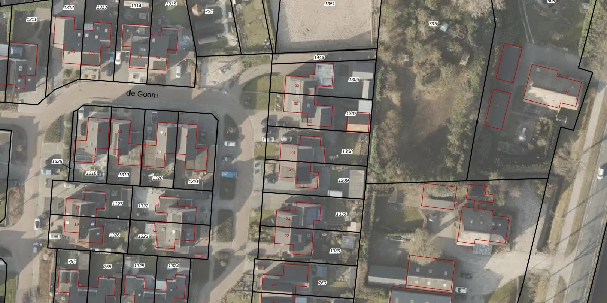 Het perceel waarop de Goorn 28 staat heeft een oppervlakte van 372 m². Dit is een groot perceel. De perceeloppervlakte wordt geregistreerd door het Kadaster. Gedetailleerde informatie over de maten van dit perceel kunt u vinden in het rapport Kadastrale kaart met maatvoering van de Goorn 28.