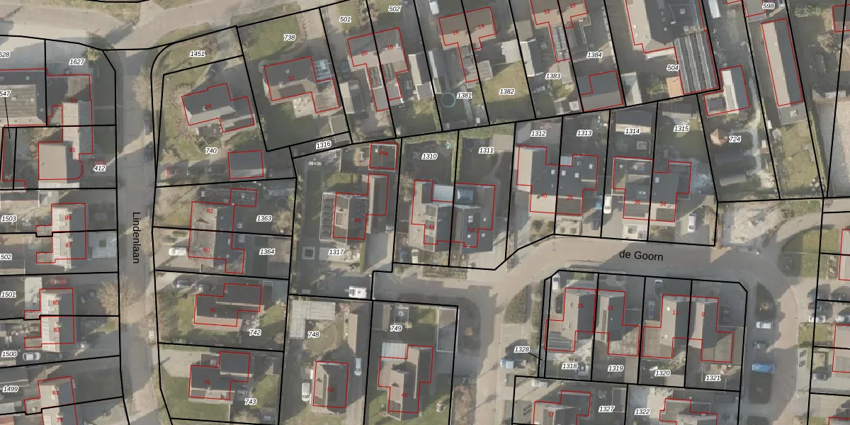Het perceel waarop de Goorn 44 staat heeft een oppervlakte van 408 m². Dit is een groot perceel. De perceeloppervlakte wordt geregistreerd door het Kadaster. Gedetailleerde informatie over de maten van dit perceel kunt u vinden in het rapport Kadastrale kaart met maatvoering van de Goorn 44.