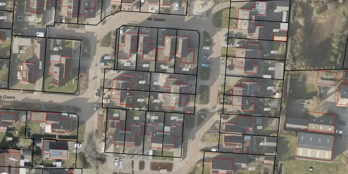 Het perceel waarop de Goorn 7 staat heeft een oppervlakte van 298 m². Dit is een middelgroot perceel. De perceeloppervlakte wordt geregistreerd door het Kadaster. Gedetailleerde informatie over de maten van dit perceel kunt u vinden in het rapport Kadastrale kaart met maatvoering van de Goorn 7.