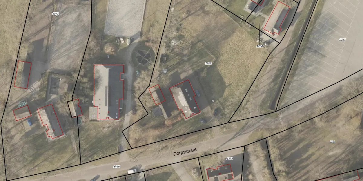 Het perceel waarop Dorpsstraat 1 staat heeft een oppervlakte van 3620 m². Dit is een zeer groot perceel. De perceeloppervlakte wordt geregistreerd door het Kadaster. Gedetailleerde informatie over de maten van dit perceel kunt u vinden in het rapport Kadastrale kaart met maatvoering van Dorpsstraat 1.