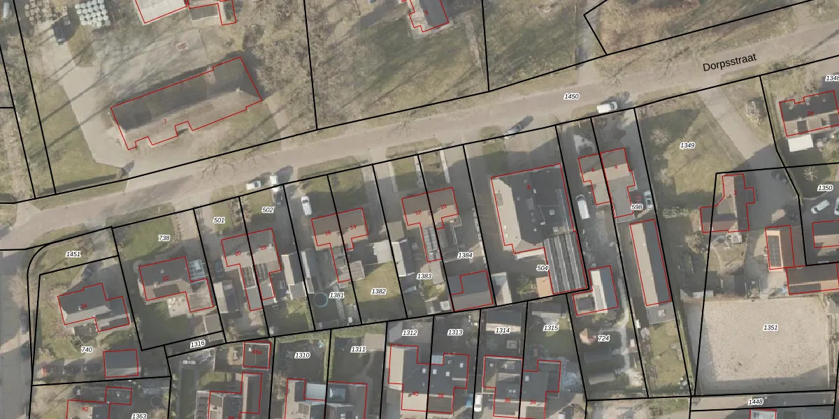 Het perceel waarop Dorpsstraat 12 staat heeft een oppervlakte van 427 m². Dit is een groot perceel. De perceeloppervlakte wordt geregistreerd door het Kadaster. Gedetailleerde informatie over de maten van dit perceel kunt u vinden in het rapport Kadastrale kaart met maatvoering van Dorpsstraat 12.