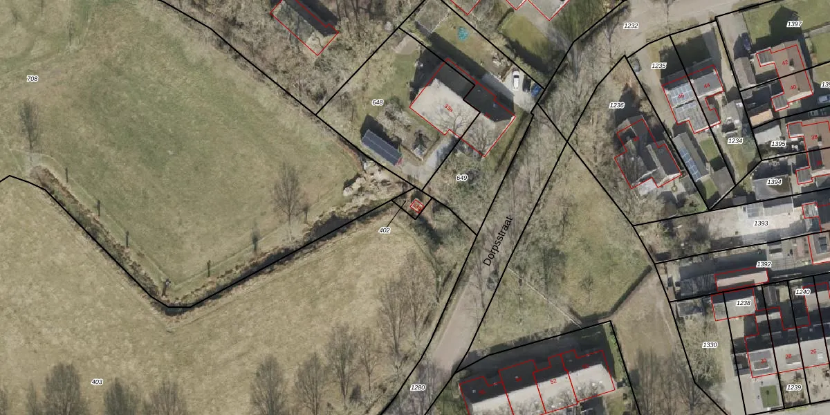 Het perceel waarop Dorpsstraat 33-b staat heeft een oppervlakte van 34 m². Dit is een klein perceel. De perceeloppervlakte wordt geregistreerd door het Kadaster. Gedetailleerde informatie over de maten van dit perceel kunt u vinden in het rapport Kadastrale kaart met maatvoering van Dorpsstraat 33-b.
