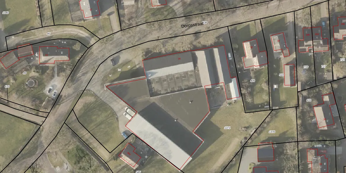 Het perceel waarop Dorpsstraat 34 staat heeft een oppervlakte van 6264 m². Dit is een zeer groot perceel. De perceeloppervlakte wordt geregistreerd door het Kadaster. Gedetailleerde informatie over de maten van dit perceel kunt u vinden in het rapport Kadastrale kaart met maatvoering van Dorpsstraat 34.
