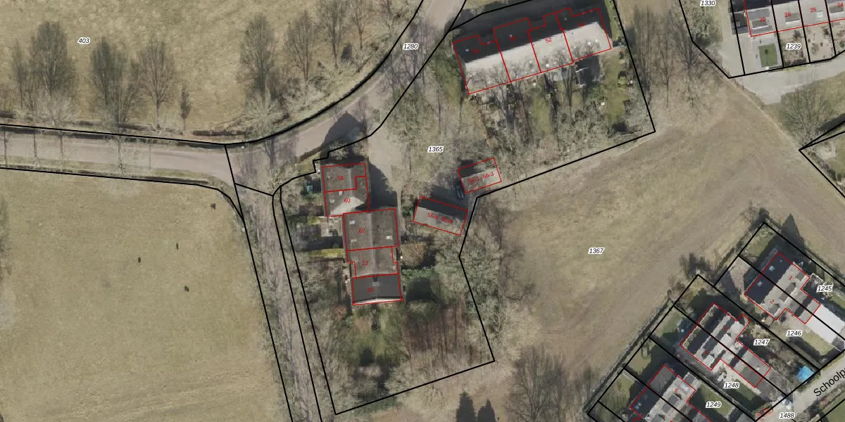 Het perceel waarop Dorpsstraat 56-6 staat heeft een oppervlakte van 4269 m². Dit is een zeer groot perceel. De perceeloppervlakte wordt geregistreerd door het Kadaster. Gedetailleerde informatie over de maten van dit perceel kunt u vinden in het rapport Kadastrale kaart met maatvoering van Dorpsstraat 56-6.
