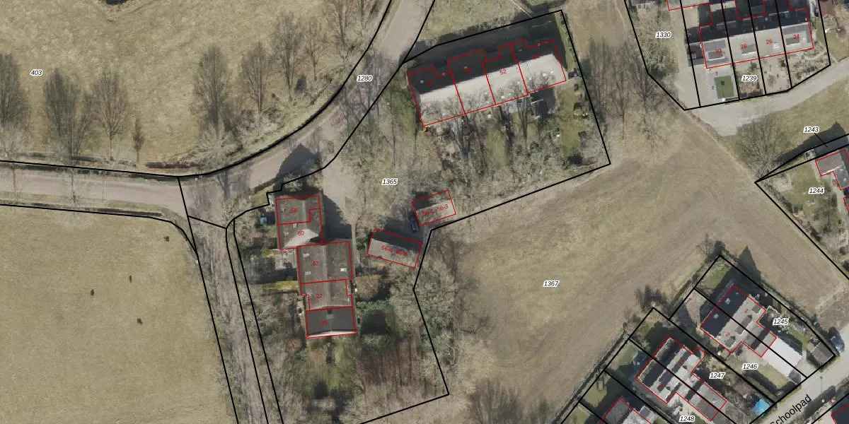 Het perceel waarop Dorpsstraat 56-3 staat heeft een oppervlakte van 4269 m². Dit is een zeer groot perceel. De perceeloppervlakte wordt geregistreerd door het Kadaster. Gedetailleerde informatie over de maten van dit perceel kunt u vinden in het rapport Kadastrale kaart met maatvoering van Dorpsstraat 56-3.