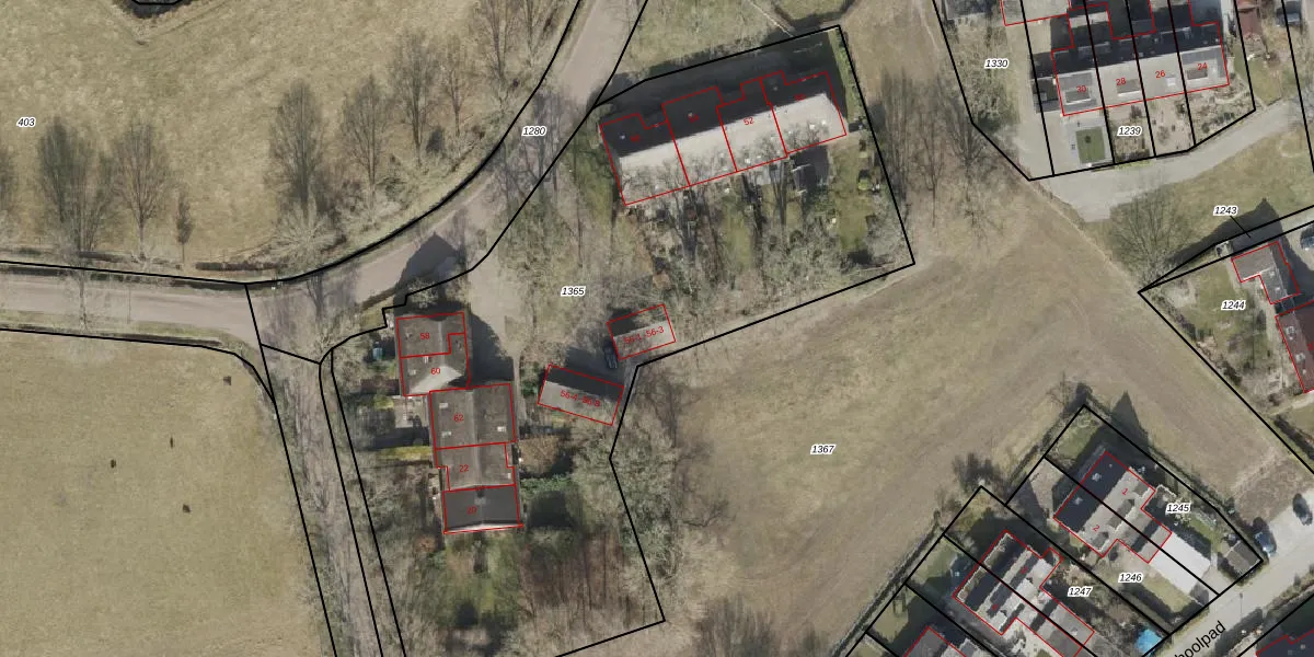 Het perceel waarop Dorpsstraat 56-1 staat heeft een oppervlakte van 4269 m². Dit is een zeer groot perceel. De perceeloppervlakte wordt geregistreerd door het Kadaster. Gedetailleerde informatie over de maten van dit perceel kunt u vinden in het rapport Kadastrale kaart met maatvoering van Dorpsstraat 56-1.