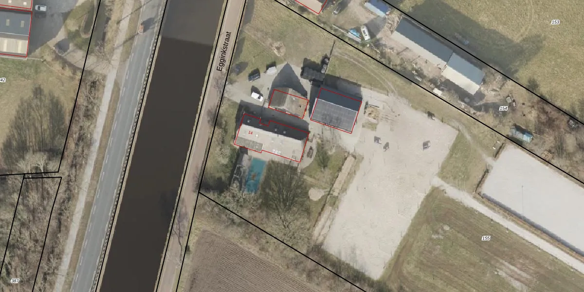 Egginkstraat 14 is gelegen op kadastraal perceel HVT03P155. Deze kadastrale aanduiding is uniek en wordt gebruikt door het Kadaster om eigendomsrechten en andere zakelijke rechten vast te leggen. Het perceel maakt onderdeel uit van de kadastrale gemeente Havelte.