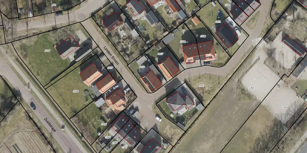 Het perceel waarop Linden Erven 1 staat heeft een oppervlakte van 348 m². Dit is een groot perceel. De perceeloppervlakte wordt geregistreerd door het Kadaster. Gedetailleerde informatie over de maten van dit perceel kunt u vinden in het rapport Kadastrale kaart met maatvoering van Linden Erven 1.