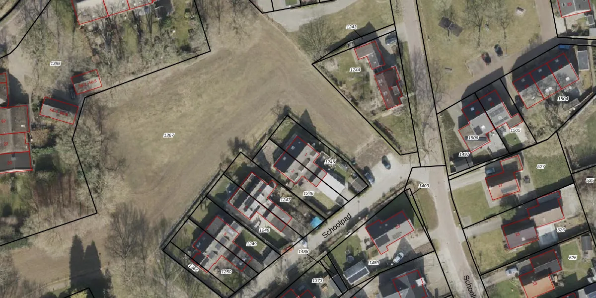 Het perceel waarop Schoolpad 1 staat heeft een oppervlakte van 341 m². Dit is een groot perceel. De perceeloppervlakte wordt geregistreerd door het Kadaster. Gedetailleerde informatie over de maten van dit perceel kunt u vinden in het rapport Kadastrale kaart met maatvoering van Schoolpad 1.