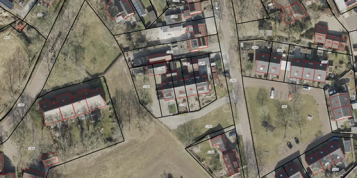 Gebruik de zoekbalk of klik op een perceel voor informatie over de adressen binnen dit perceel.