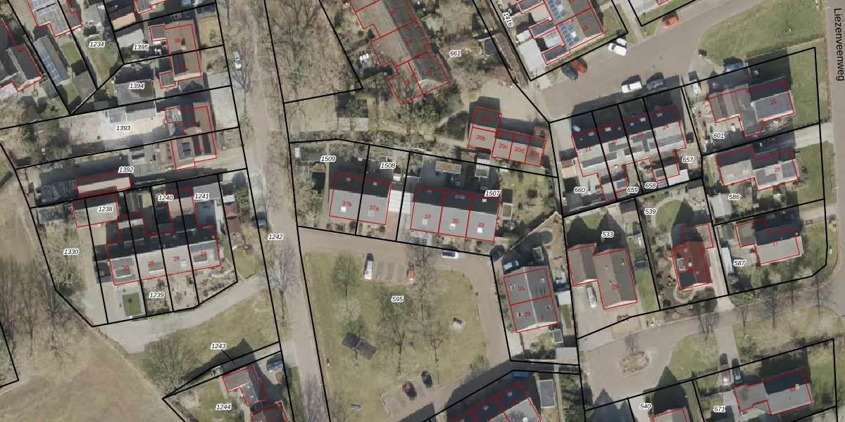 Het perceel waarop Schoolstraat 37 staat heeft een oppervlakte van 1217 m². Dit is een zeer groot perceel. De perceeloppervlakte wordt geregistreerd door het Kadaster. Gedetailleerde informatie over de maten van dit perceel kunt u vinden in het rapport Kadastrale kaart met maatvoering van Schoolstraat 37.