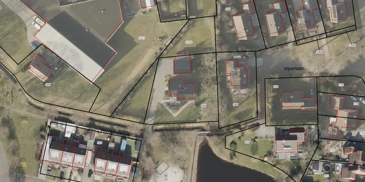 Het perceel waarop Veenbesstraat 15-a staat heeft een oppervlakte van 1341 m². Dit is een zeer groot perceel. De perceeloppervlakte wordt geregistreerd door het Kadaster. Gedetailleerde informatie over de maten van dit perceel kunt u vinden in het rapport Kadastrale kaart met maatvoering van Veenbesstraat 15-a.