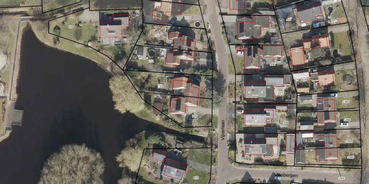 Het perceel waarop Vijverlaan 19 staat heeft een oppervlakte van 543 m². Dit is een groot perceel. De perceeloppervlakte wordt geregistreerd door het Kadaster. Gedetailleerde informatie over de maten van dit perceel kunt u vinden in het rapport Kadastrale kaart met maatvoering van Vijverlaan 19.