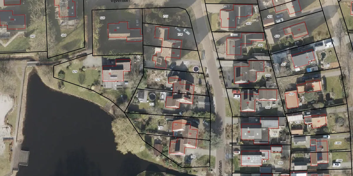 Vijverlaan 23 is gelegen op kadastraal perceel HVT03M712. Deze kadastrale aanduiding is uniek en wordt gebruikt door het Kadaster om eigendomsrechten en andere zakelijke rechten vast te leggen. Het perceel maakt onderdeel uit van de kadastrale gemeente Havelte.