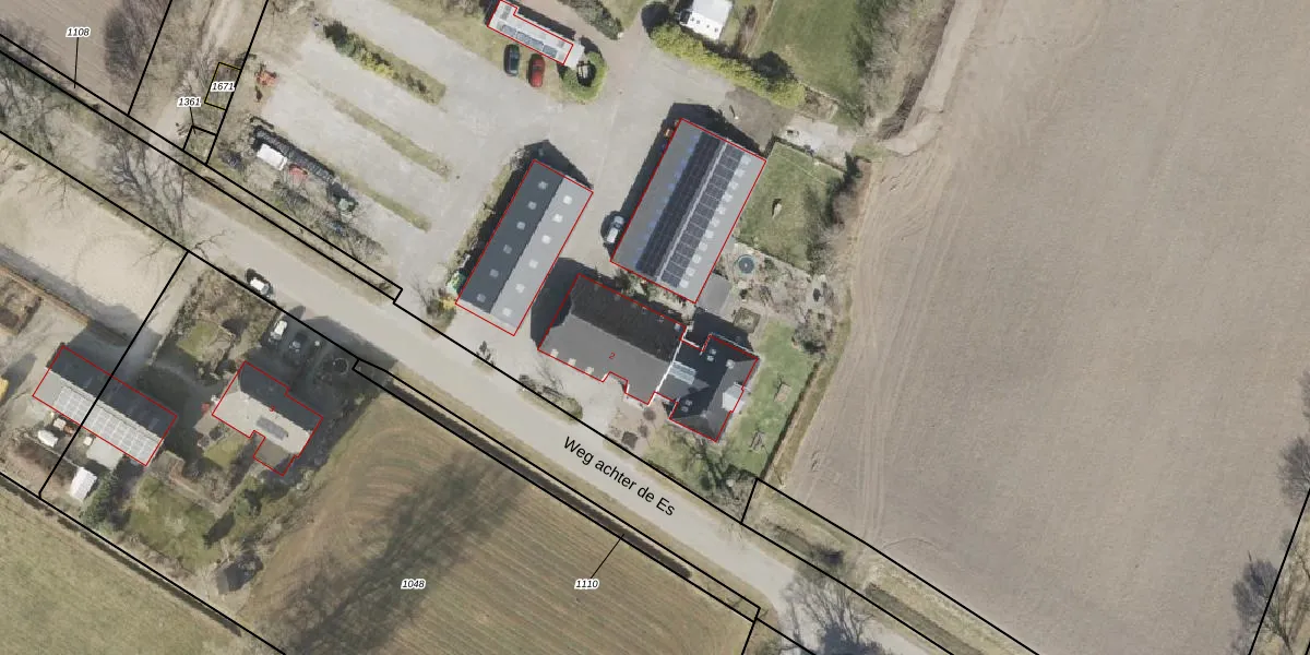 Het perceel waarop Weg achter de Es 2 staat heeft een oppervlakte van 5,0 ha. Dit is een zeer groot perceel. De perceeloppervlakte wordt geregistreerd door het Kadaster. Gedetailleerde informatie over de maten van dit perceel kunt u vinden in het rapport Kadastrale kaart met maatvoering van Weg achter de Es 2.