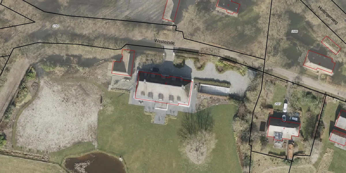 Het perceel waarop Westeinde 6 staat heeft een oppervlakte van 3,2 ha. Dit is een zeer groot perceel. De perceeloppervlakte wordt geregistreerd door het Kadaster. Gedetailleerde informatie over de maten van dit perceel kunt u vinden in het rapport Kadastrale kaart met maatvoering van Westeinde 6.