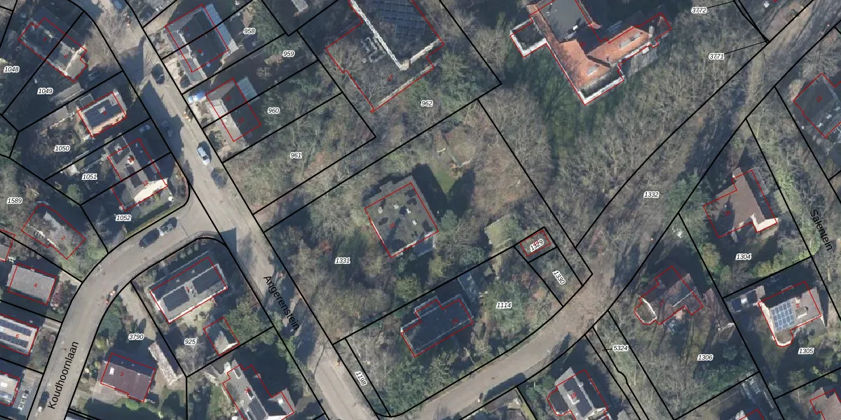 Het perceel waarop Angerenstein 21 staat heeft een oppervlakte van 2053 m². Dit is een zeer groot perceel. De perceeloppervlakte wordt geregistreerd door het Kadaster. Gedetailleerde informatie over de maten van dit perceel kunt u vinden in het rapport Kadastrale kaart met maatvoering van Angerenstein 21.