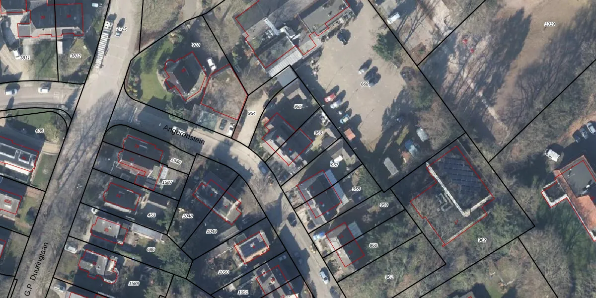 Gebruik de zoekbalk of klik op een perceel voor informatie over de adressen binnen dit perceel.