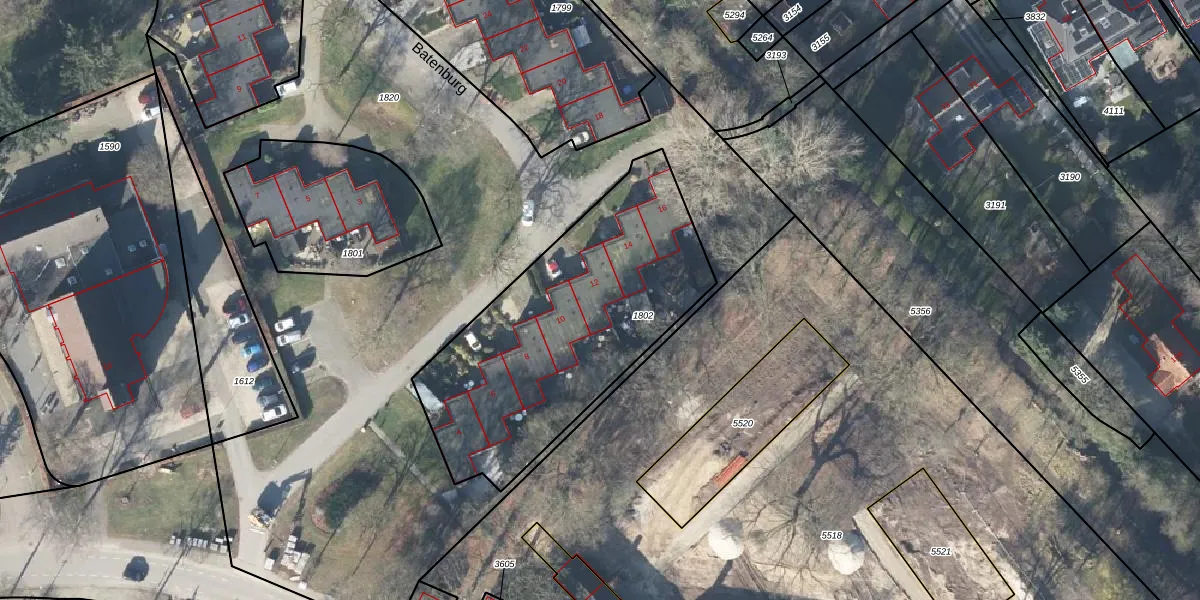 Het perceel waarop Batenburg 12 staat heeft een oppervlakte van 1327 m². Dit is een zeer groot perceel. De perceeloppervlakte wordt geregistreerd door het Kadaster. Gedetailleerde informatie over de maten van dit perceel kunt u vinden in het rapport Kadastrale kaart met maatvoering van Batenburg 12.