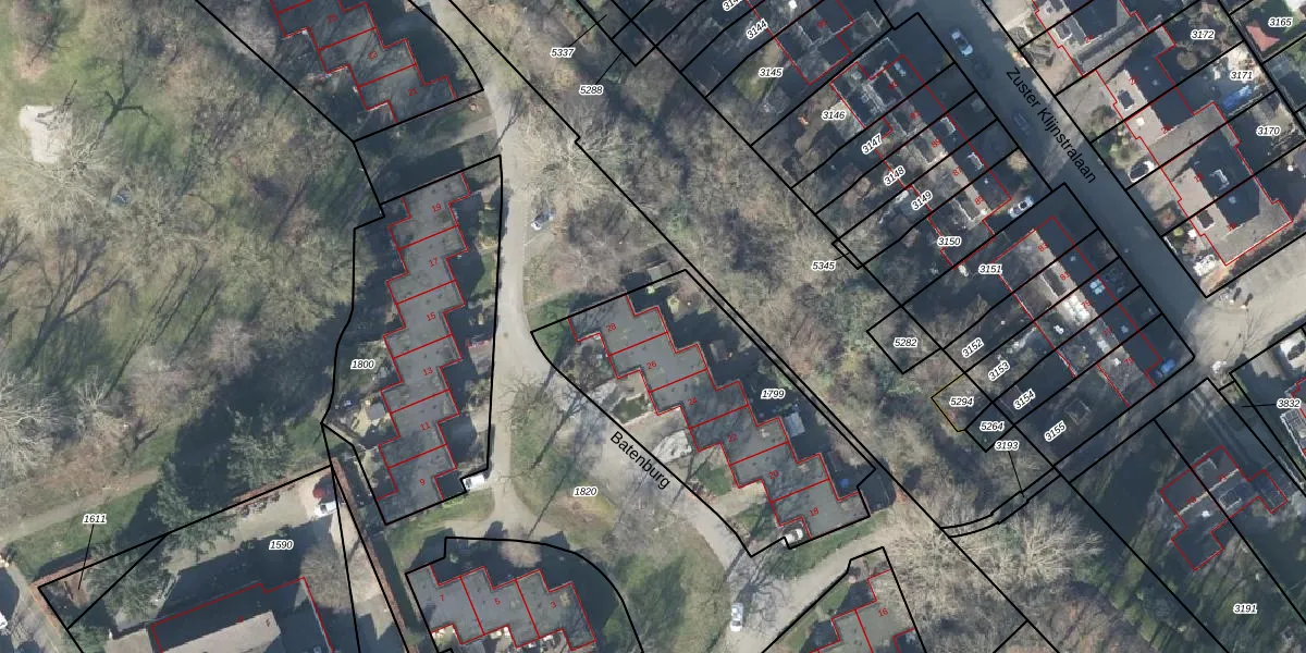 Het perceel waarop Batenburg 28 staat heeft een oppervlakte van 1127 m². Dit is een zeer groot perceel. De perceeloppervlakte wordt geregistreerd door het Kadaster. Gedetailleerde informatie over de maten van dit perceel kunt u vinden in het rapport Kadastrale kaart met maatvoering van Batenburg 28.