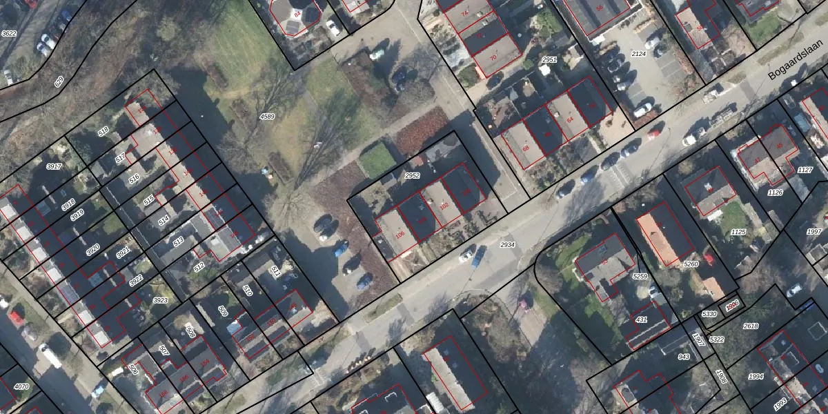 Bogaardslaan 104 is gelegen op kadastraal perceel APD03AD2952. Deze kadastrale aanduiding is uniek en wordt gebruikt door het Kadaster om eigendomsrechten en andere zakelijke rechten vast te leggen. Het perceel maakt onderdeel uit van de kadastrale gemeente Apeldoorn.
