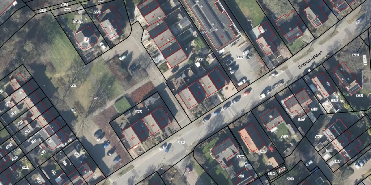 Het perceel waarop Bogaardslaan 68 staat heeft een oppervlakte van 2110 m². Dit is een zeer groot perceel. De perceeloppervlakte wordt geregistreerd door het Kadaster. Gedetailleerde informatie over de maten van dit perceel kunt u vinden in het rapport Kadastrale kaart met maatvoering van Bogaardslaan 68.