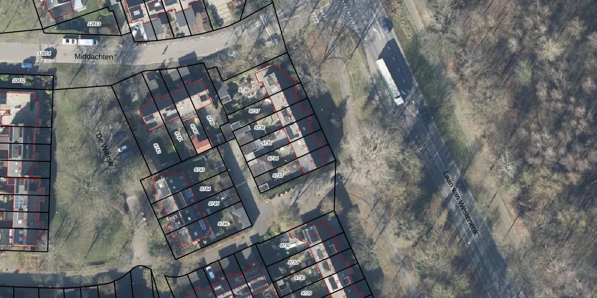 Gebruik de zoekbalk of klik op een perceel voor informatie over de adressen binnen dit perceel.