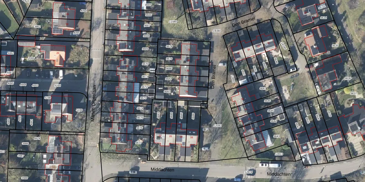 Gebruik de zoekbalk of klik op een perceel voor informatie over de adressen binnen dit perceel.
