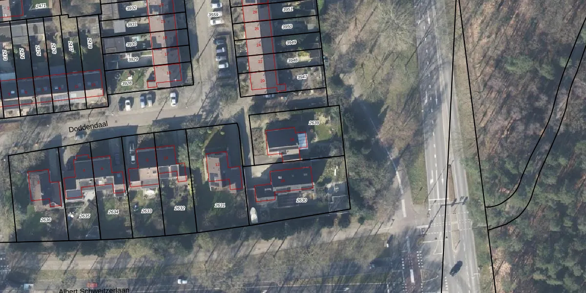 Gebruik de zoekbalk of klik op een perceel voor informatie over de adressen binnen dit perceel.