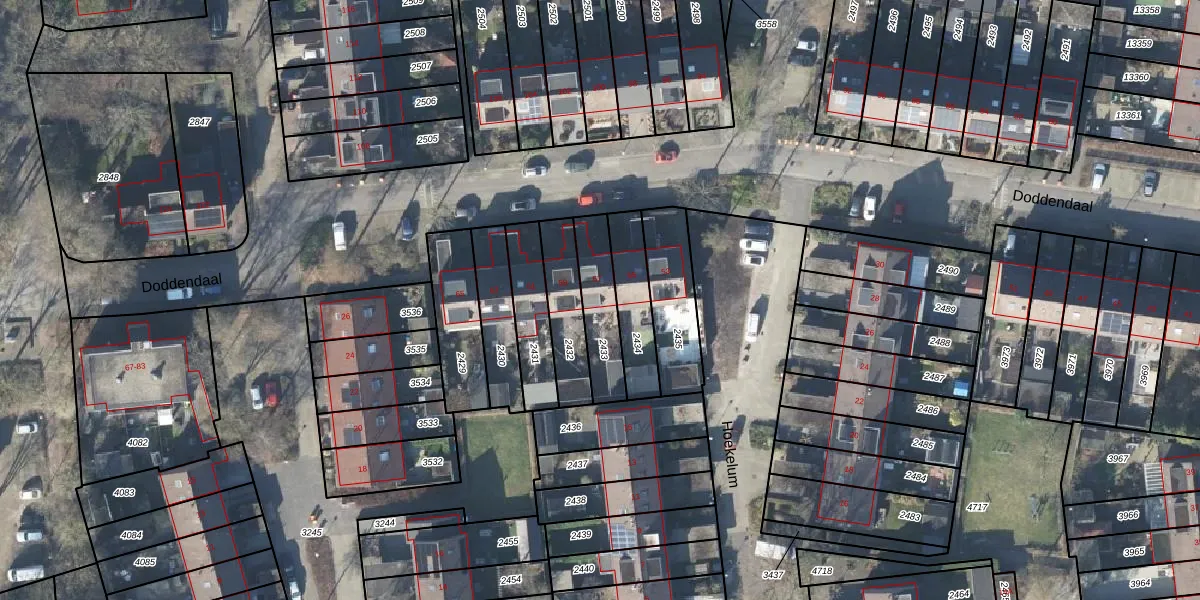 Gebruik de zoekbalk of klik op een perceel voor informatie over de adressen binnen dit perceel.