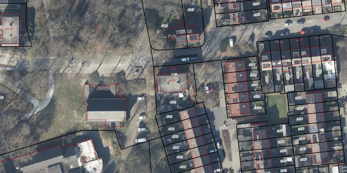 Doddendaal 81 is gelegen op kadastraal perceel APD03AD4082. Deze kadastrale aanduiding is uniek en wordt gebruikt door het Kadaster om eigendomsrechten en andere zakelijke rechten vast te leggen. Het perceel maakt onderdeel uit van de kadastrale gemeente Apeldoorn.