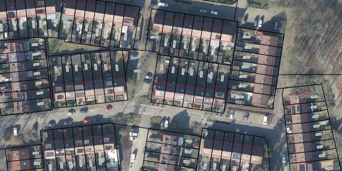 Het perceel waarop Doddendaal 90 staat heeft een oppervlakte van 161 m². Dit is een middelgroot perceel. De perceeloppervlakte wordt geregistreerd door het Kadaster. Gedetailleerde informatie over de maten van dit perceel kunt u vinden in het rapport Kadastrale kaart met maatvoering van Doddendaal 90.
