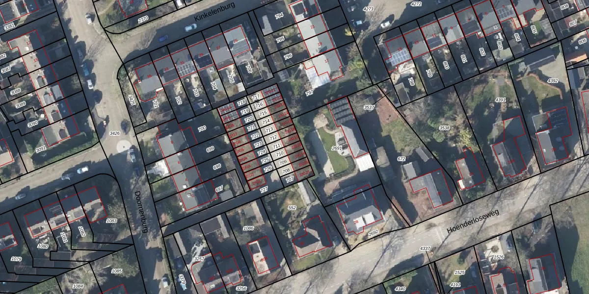 Gebruik de zoekbalk of klik op een perceel voor informatie over de adressen binnen dit perceel.