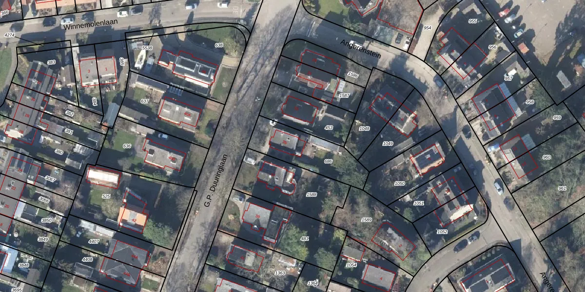 Gebruik de zoekbalk of klik op een perceel voor informatie over de adressen binnen dit perceel.