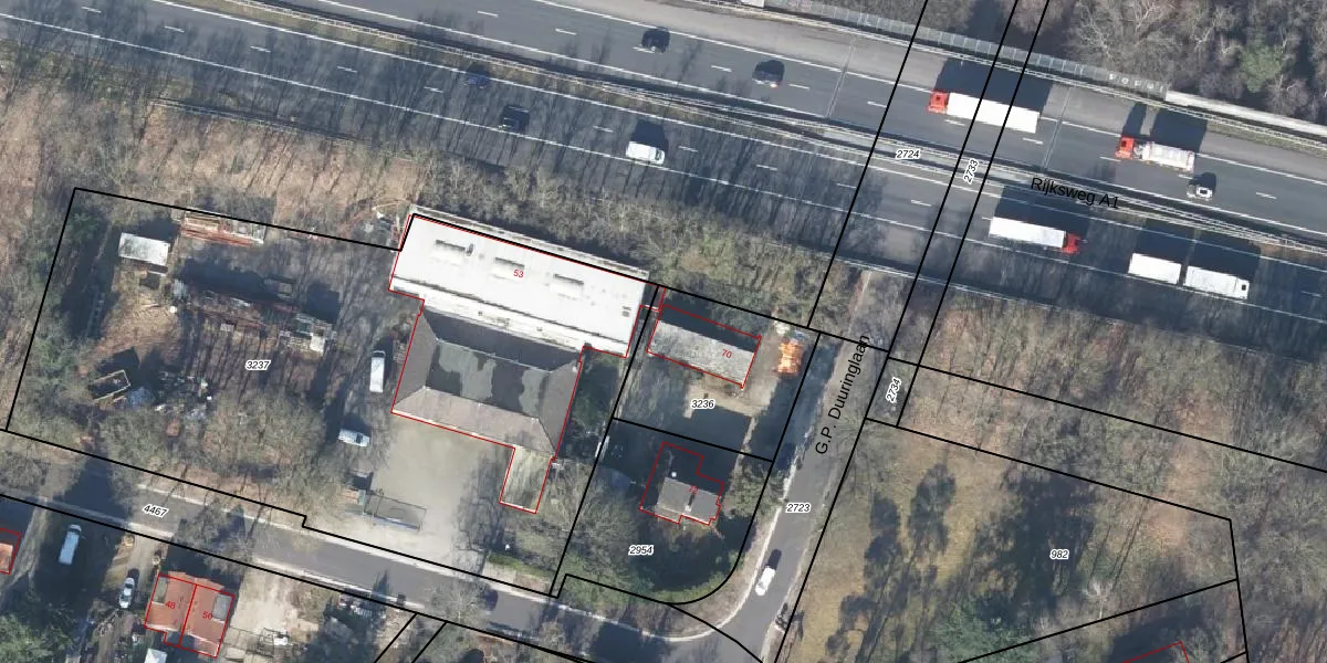 Gebruik de zoekbalk of klik op een perceel voor informatie over de adressen binnen dit perceel.