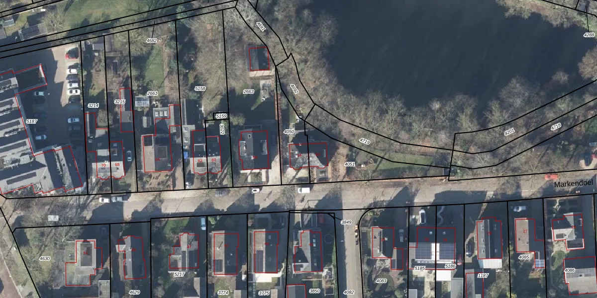 Het perceel waarop Markendoel 54 staat heeft een oppervlakte van 245 m². Dit is een middelgroot perceel. De perceeloppervlakte wordt geregistreerd door het Kadaster. Gedetailleerde informatie over de maten van dit perceel kunt u vinden in het rapport Kadastrale kaart met maatvoering van Markendoel 54.