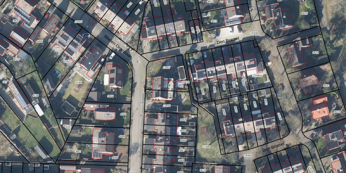 Gebruik de zoekbalk of klik op een perceel voor informatie over de adressen binnen dit perceel.