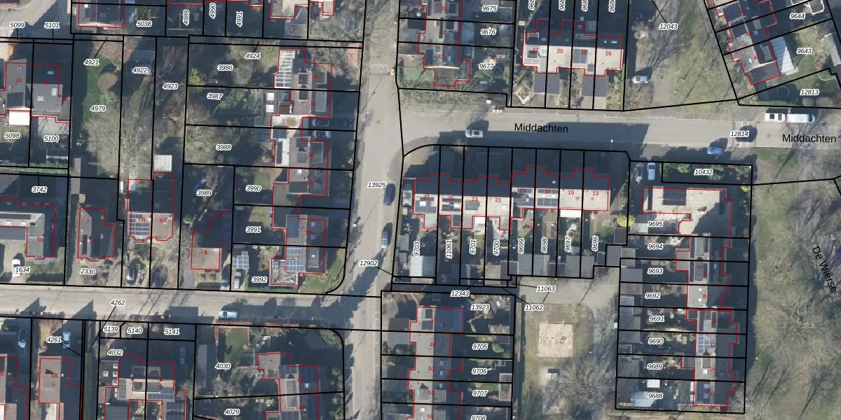Het perceel waarop Middachten 27 staat heeft een oppervlakte van 280 m². Dit is een middelgroot perceel. De perceeloppervlakte wordt geregistreerd door het Kadaster. Gedetailleerde informatie over de maten van dit perceel kunt u vinden in het rapport Kadastrale kaart met maatvoering van Middachten 27.