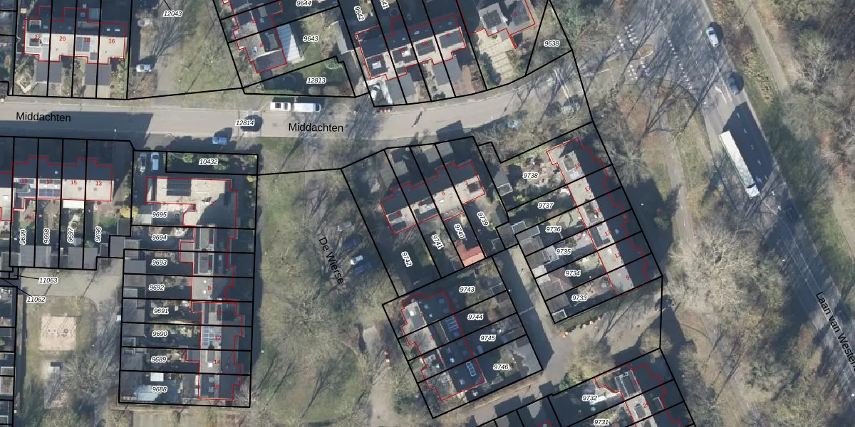 Het perceel waarop Middachten 7 staat heeft een oppervlakte van 185 m². Dit is een middelgroot perceel. De perceeloppervlakte wordt geregistreerd door het Kadaster. Gedetailleerde informatie over de maten van dit perceel kunt u vinden in het rapport Kadastrale kaart met maatvoering van Middachten 7.